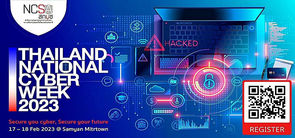 AVM Amorn Chomchoey, Secretary General of the National Cyber Security Agency (NCSA), stated that presently cyber threats come in various forms and conditions, which differ considerably from those in the past, and have widely impacted on many sectors. Therefore, NCSA is planning “Thailand National Cyber Week 2023” to meet cybersecurity plans and policies, aiming and issuing guidelines for integrating, addressing, establishing measures and mechanisms in securing national cyberspace.